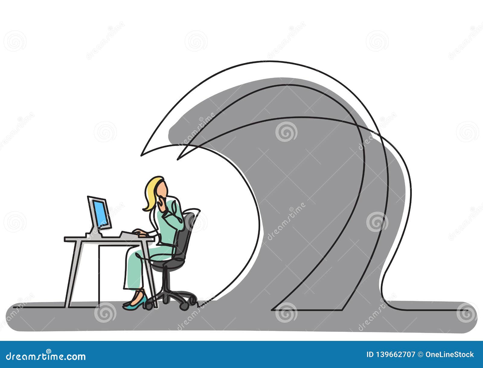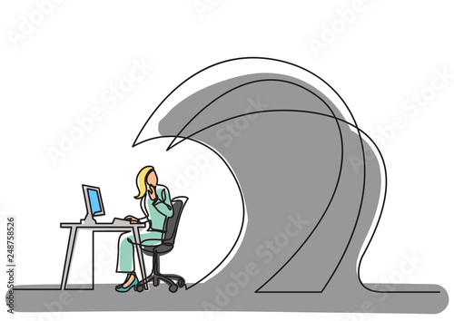 Continuous Line Drawing Business Concept Office Worker Waves