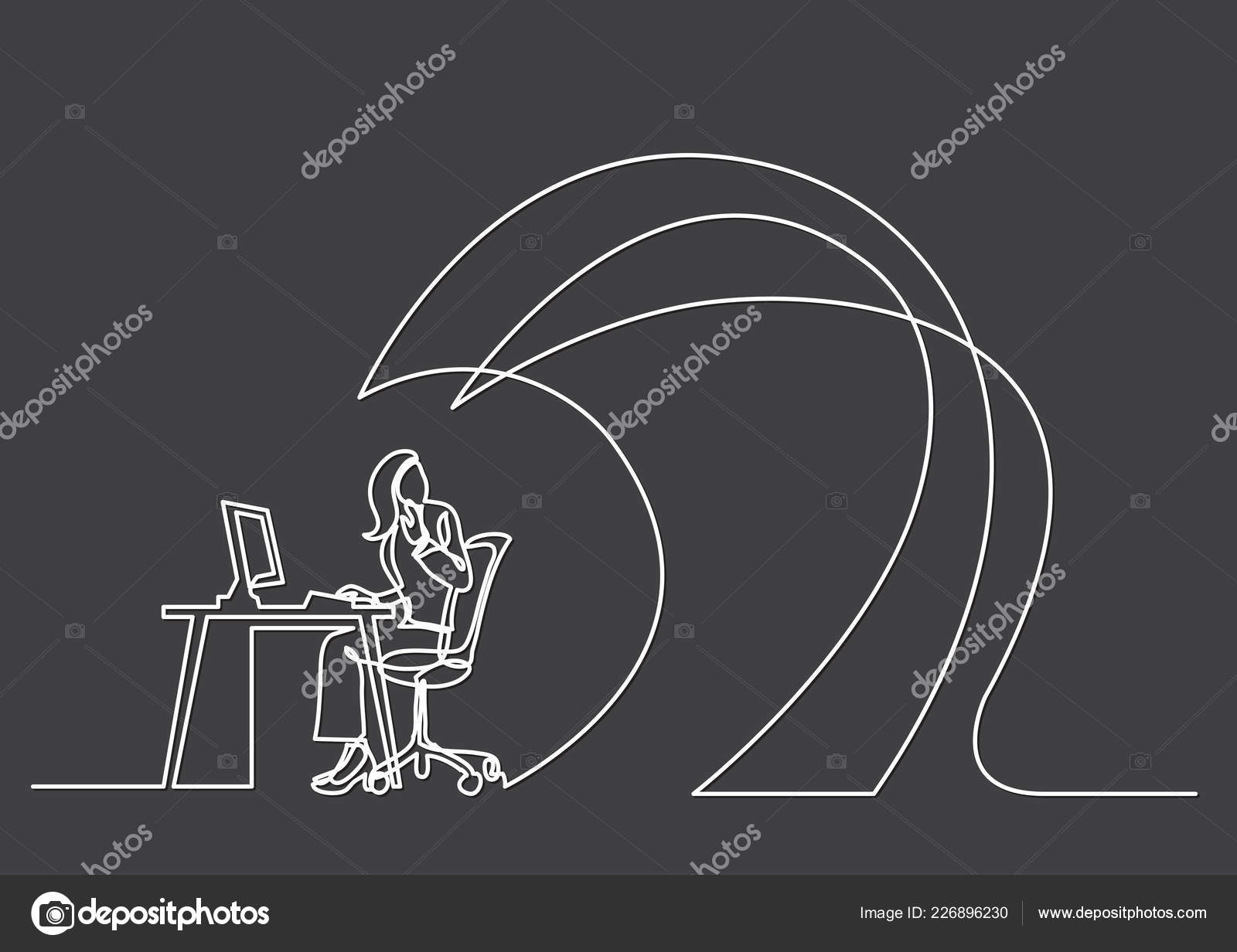 Line Art Illustration Of Modern Office Working Space With Employee