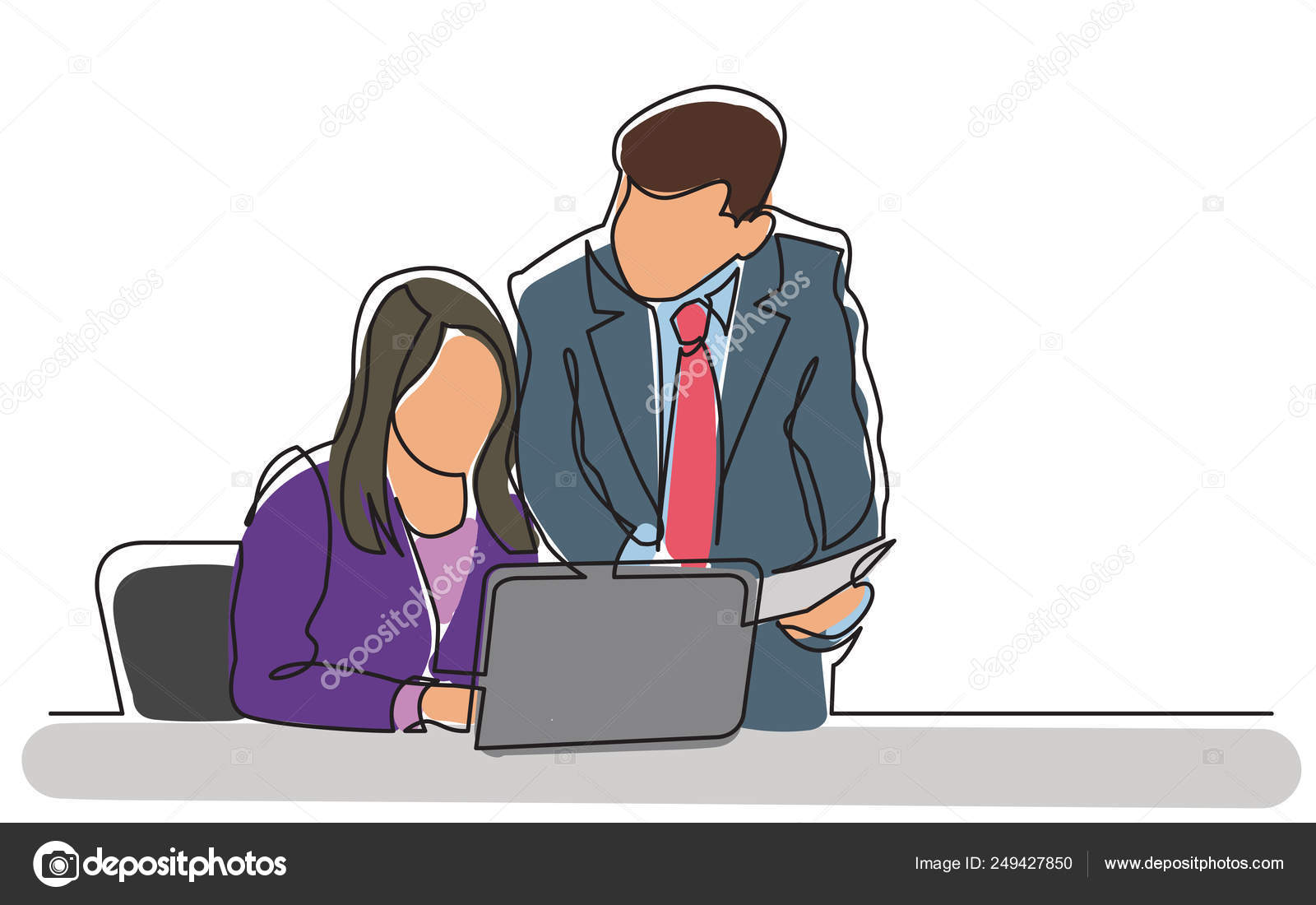 Continuous Line Drawing Of Boss And Employee Discussing Work