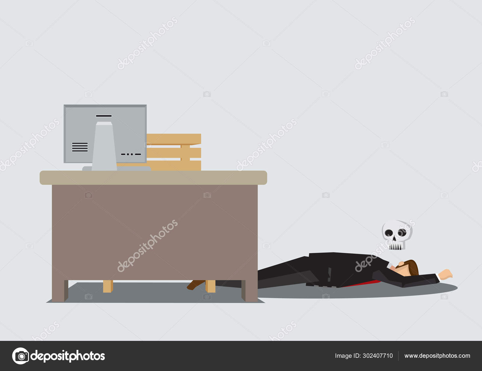 Office Worker Died At Work Cartoon Drawing Vector