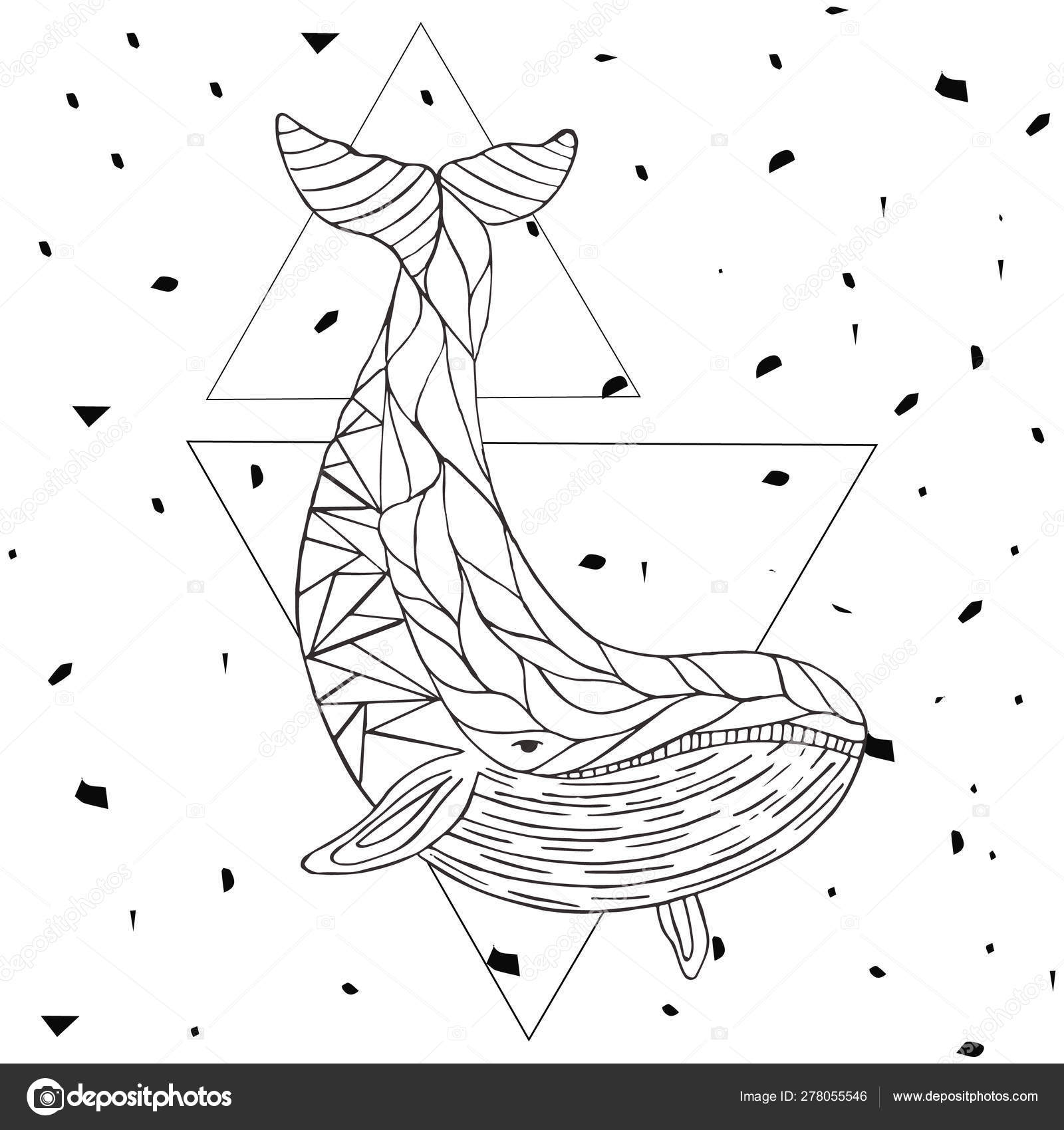 Whale Tattoo Geometric Style Mystical Symbol Of Adventure Dreams