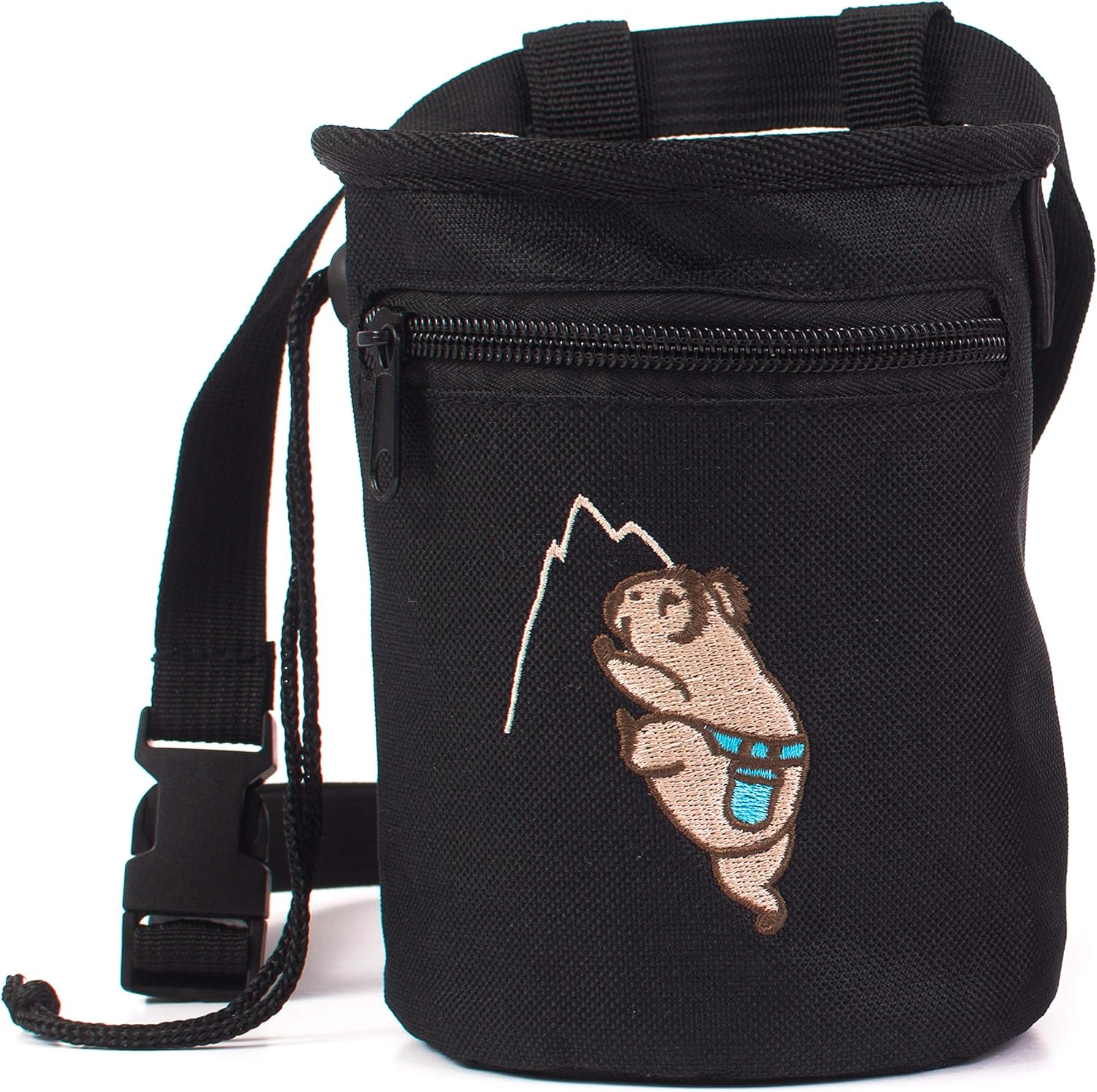 Craggy S Chalk Bag For Kids And Adults With Drawstring Closure Zippered Pocket Adjustable Quick Clip Belt And Embroidered Koala Design